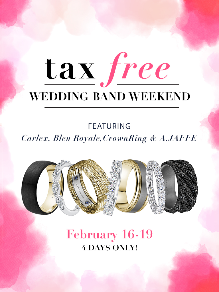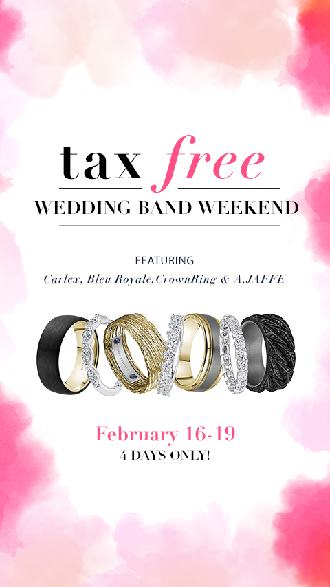 We're thrilled to announce our Tax-Free Wedding Band Weekend, where the magic of love and the artistry of A.JAFFE and CrownRing come together.