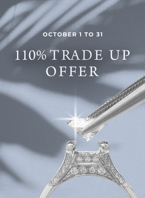 Your love is extraordinary, and your diamond should be too. That's why, during the entire month of October, we are thrilled to offer our exclusive 110% Trade-Up Offer on every natural diamond center stone purchase.